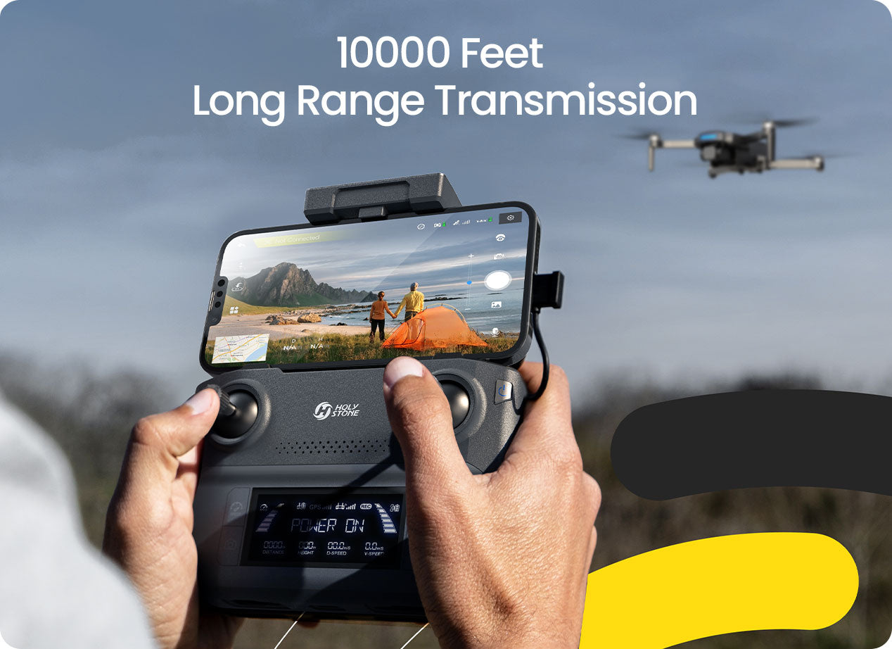 - 10,000 Feet Long Range Transmission: Thanks to Holy Stone Advanced Intelligent Control System, The control range of HS360S, drones with camera for adults 4K, is up to 10,000 Feet. The Powerful Modular Battery supports 20 minutes of flight. Experience the freedom to explore like never before with Holy Stone Drone for Adults.