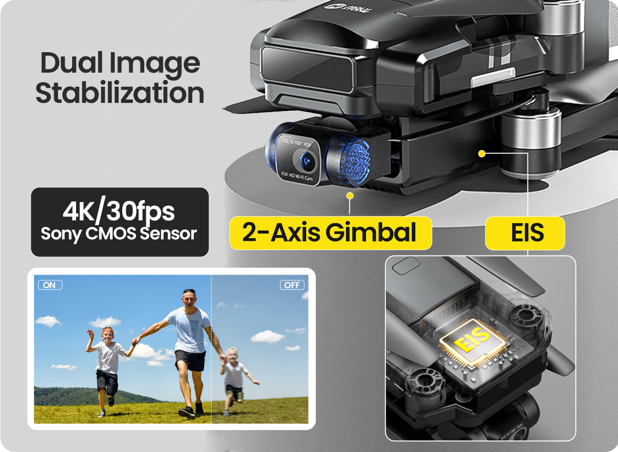 Sony COMS Sensor Camera:4K@30fps / 2-Axis Gimbal+EIS