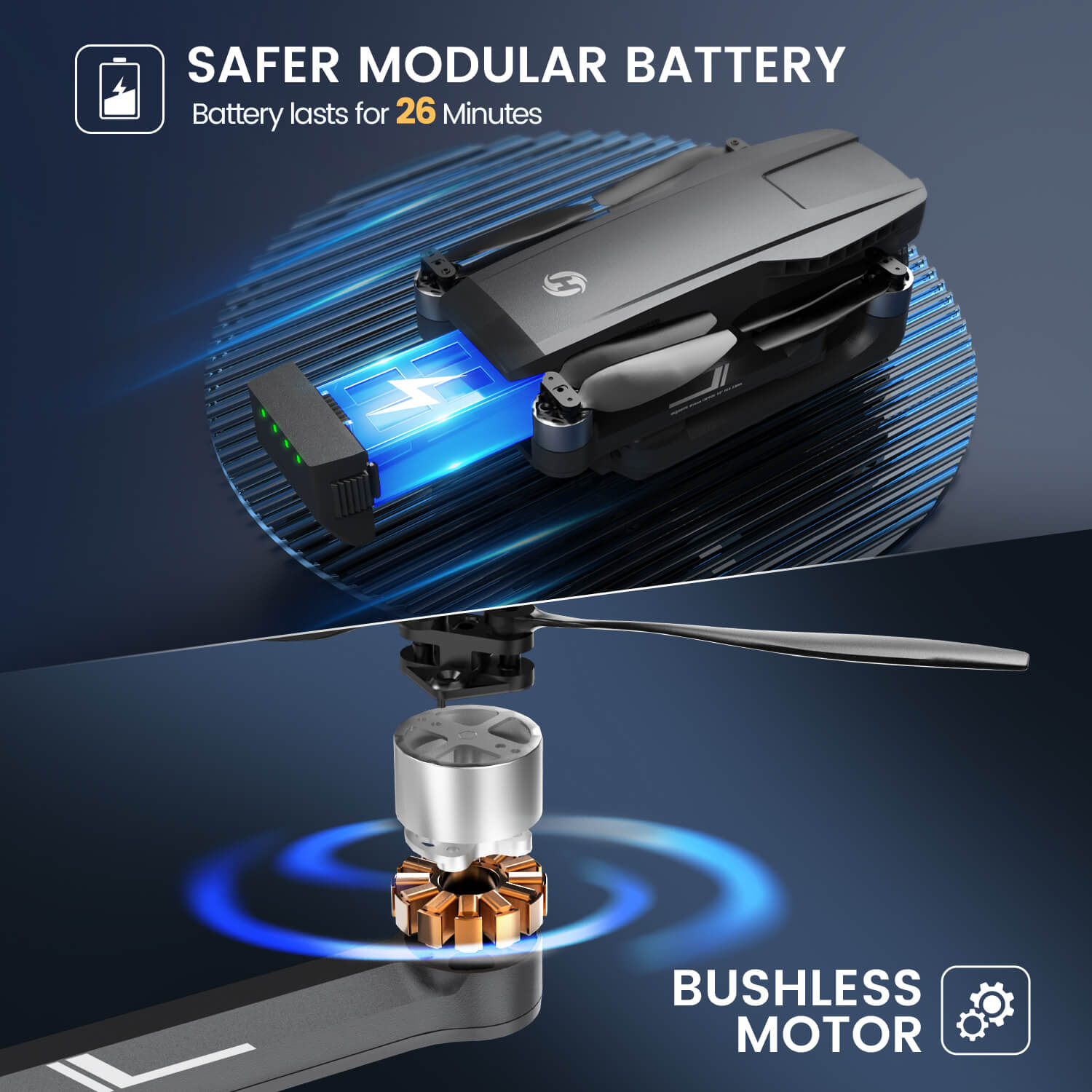 • Capture Crisp Aerial Moments: Soar to New Heights of Aerial Excellence with the HS720G Drone, Enhanced by a Cutting-edge Sony Sensor. Whether you're capturing expansive landscapes or intricate details, the seamless synergy between the 2-axis gimbal and EIS stabilization eradicates vibrations, ensuring a tapestry of smooth and crystal-clear visuals. Mated with high-powered brushless motors, the HS720G 4K drone with camera achieves an unmatched level of stability.