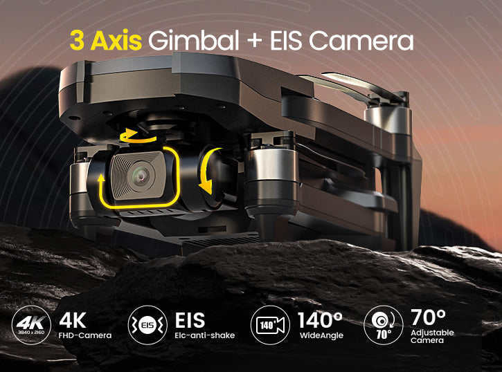 Dual image stabilization: 3-Asix Gimbal + EIS Tech;