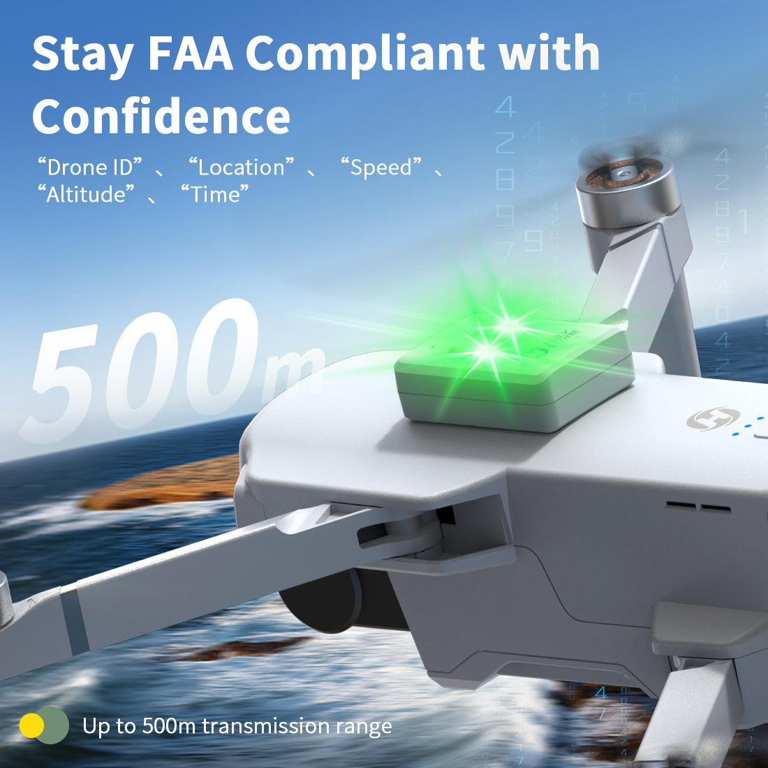 - 【FAA Compliance】Easily meets FAA requirements for drones over 250 g (0.55 lb). This RID module replaces bulky add‑on RID units, enabling legal flight for Mavic 3, Mini 4 Pro, Phantom 4, ATOM 3‑Axis, HS720 series, FPV drones, and 20+ other models.